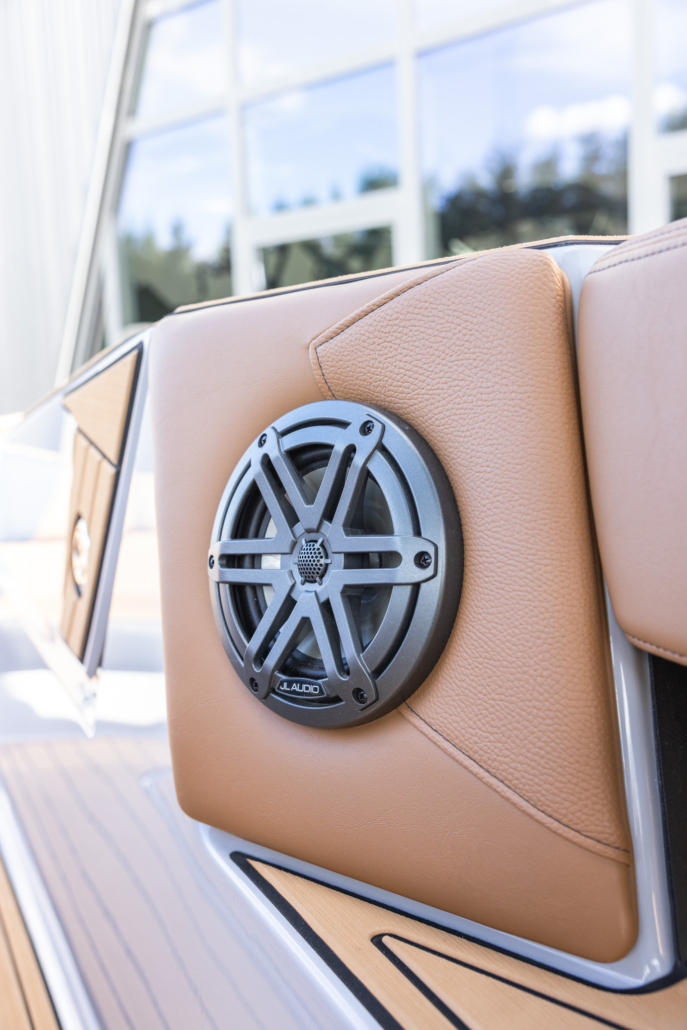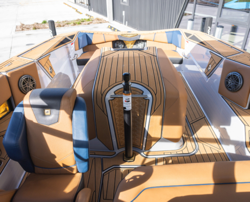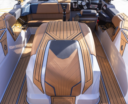The 22-foot S220 is one of our new S-Series reshaping the Supreme Boats brand farther ahead of the value class. In fact, the S-Series boats are redefining that class. The S220 easily accommodates 14 people in an interior that screams luxury because its Comfort Strong Marine Vinyl by Spradling has the strength of a 17-mil top and is sewn together with indestructible Gore Tenera Thread by GORETEX. The new EZ-V hull design is home to as much as 4400 pounds of ballast in six independently pumped ballast locations.