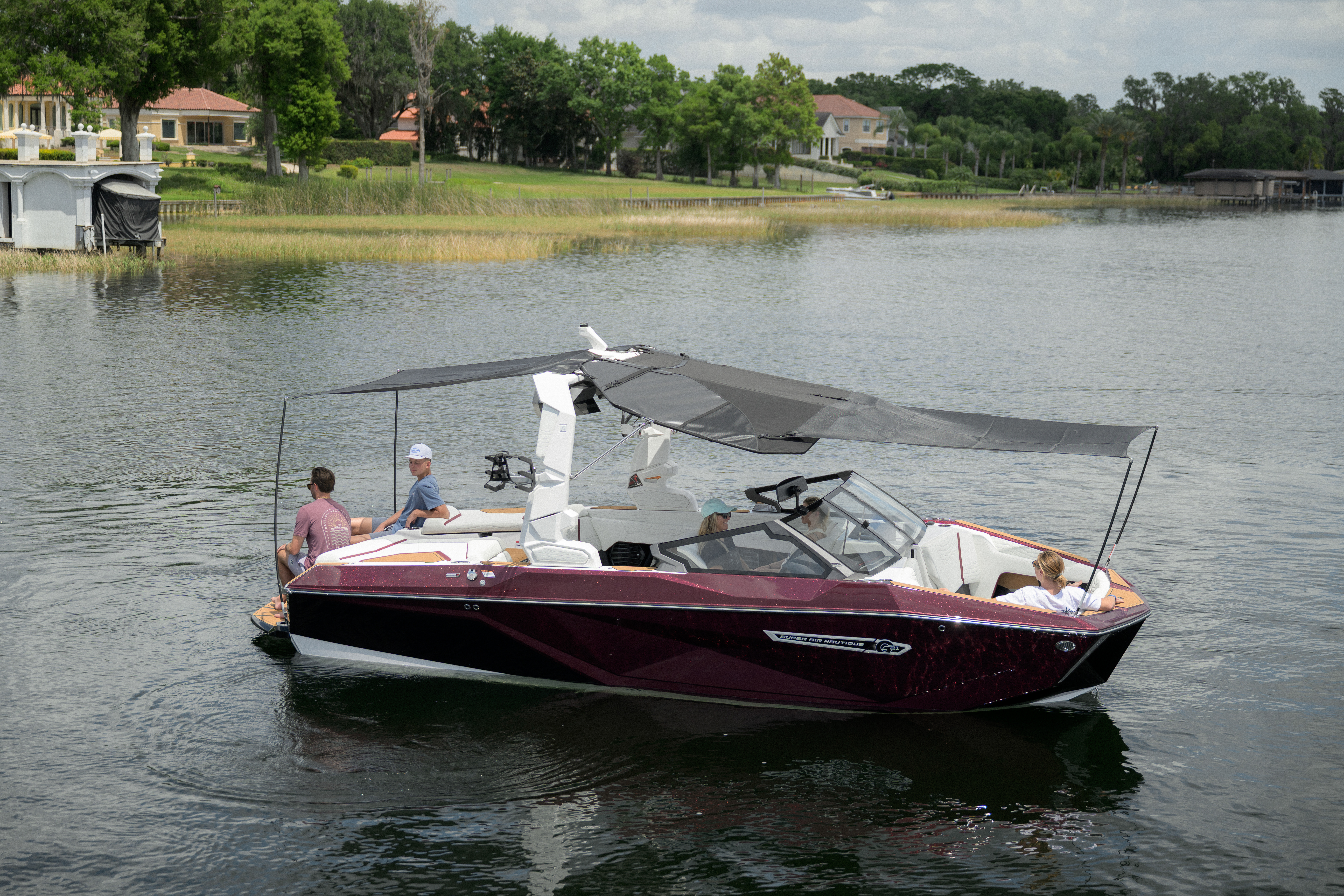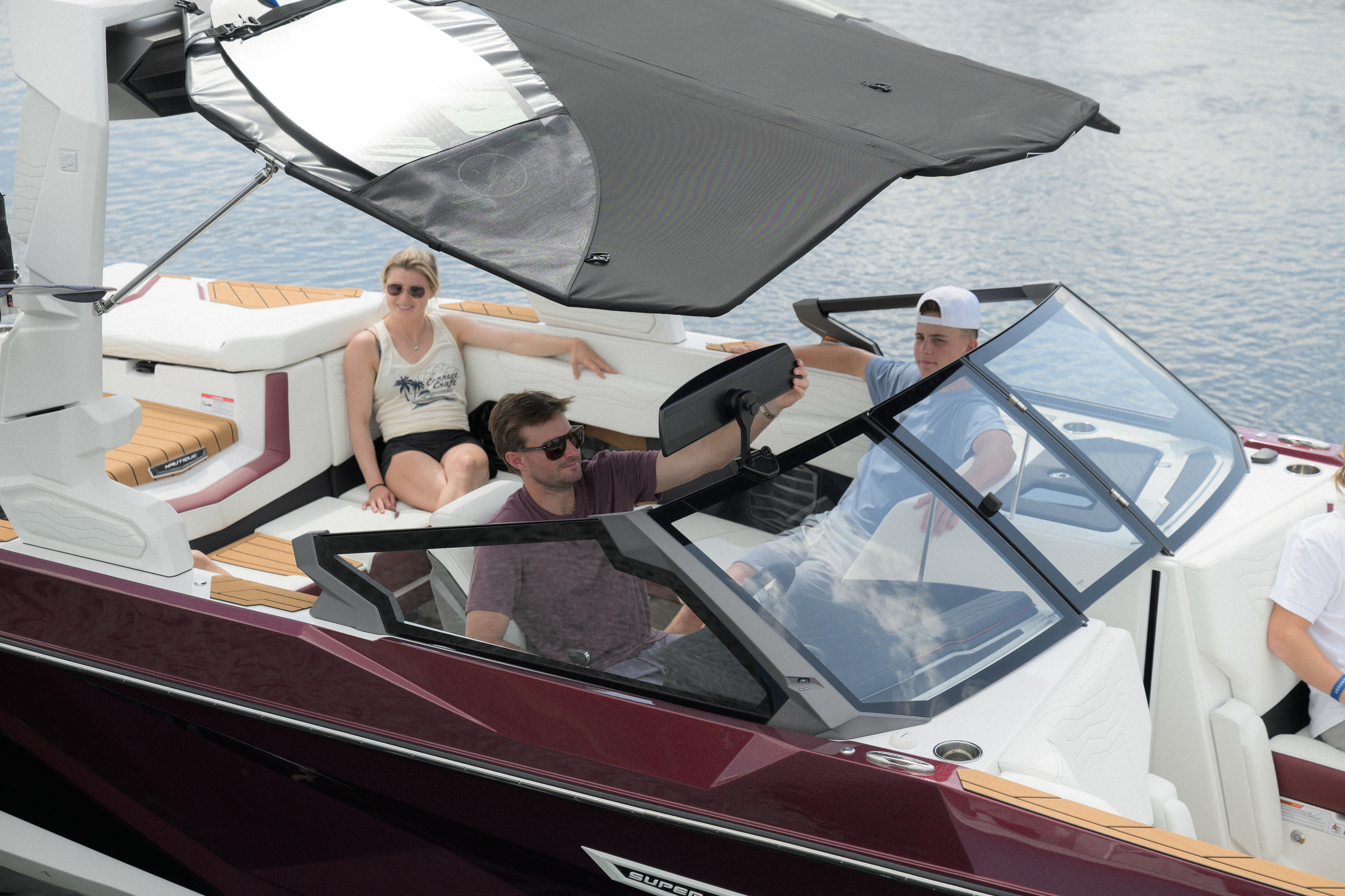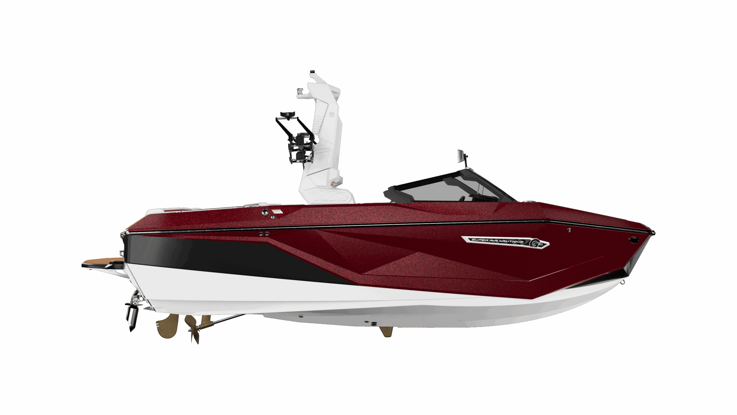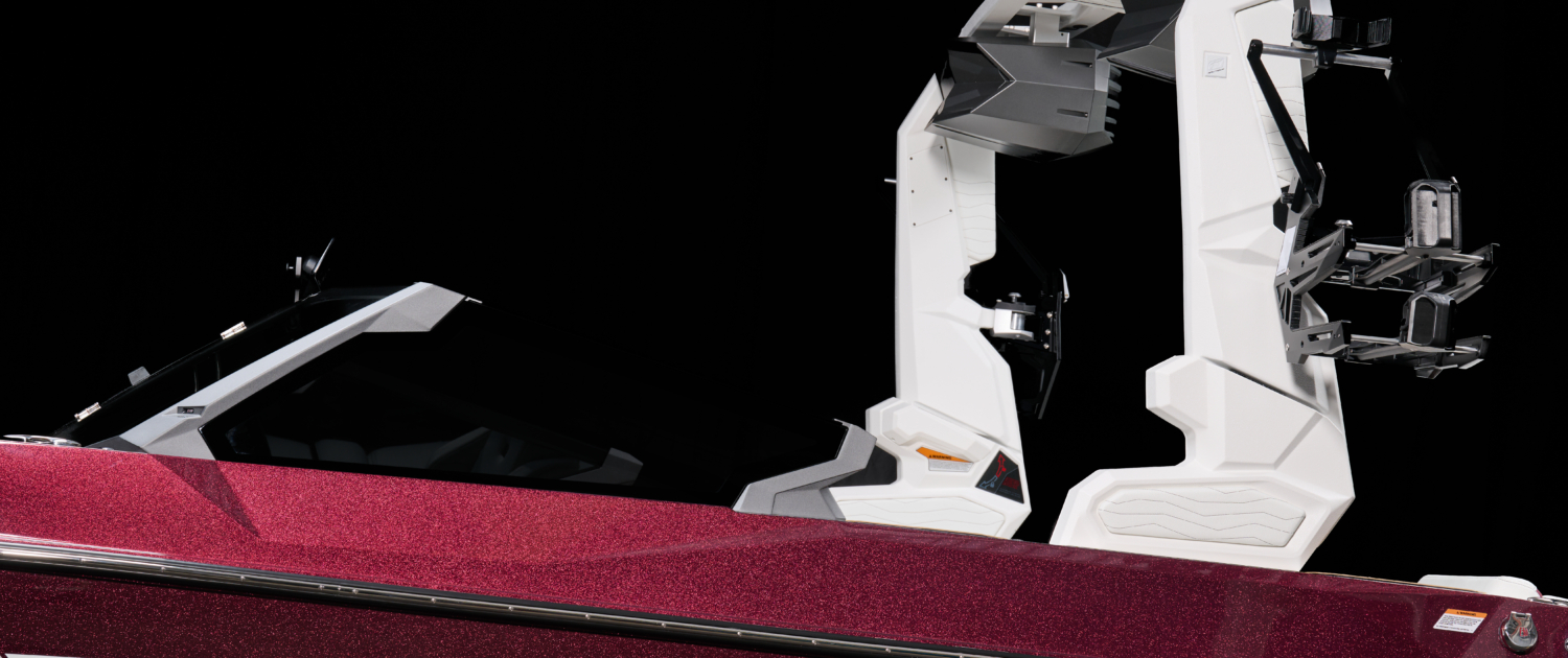 The Super Air Nautique G21 has three tower options for 2025. It comes standard with our Flight Control Tower, or you can opt up to the Actuated Flight Control Tower which folds up or down at the touch of a button. Upgrade to the Telescoping Flight Control Tower, and you can quickly and easily telescope the tower up or down with everyone sitting comfortably in their seats.
