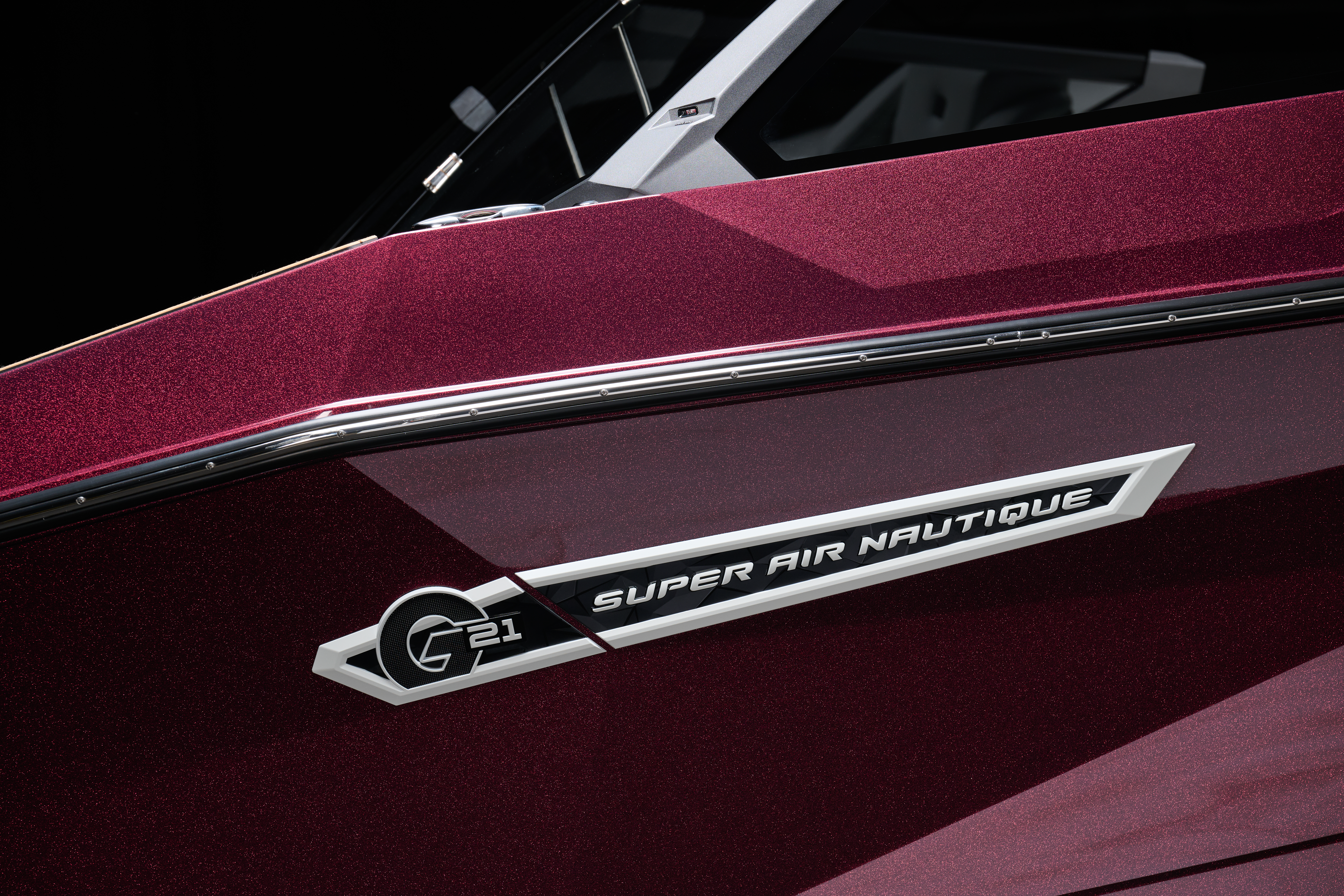 Newly designed for 2025, the automotive-inspired frameless windshield on the Super Air Nautique G21 takes cues from the exterior styling of the G21 and continues those lines for a uniform look while giving the driver a clear view of their surroundings.