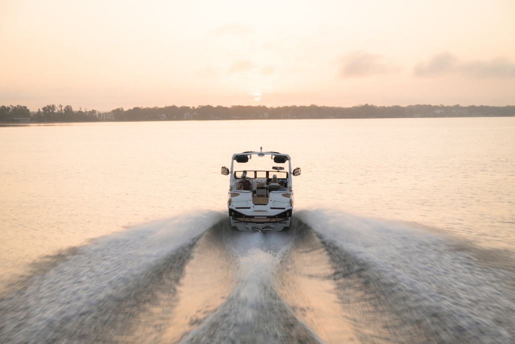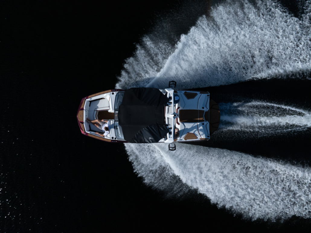 The G21 has incredible performance characteristics thanks to the Nautique Configurable Running Surface (NCRS). As an extension of the hull, the NCRS deploys and stows automatically based on user-setting conditions and allows the G21 to perform flawlessly at any speed and for any activity you’re participating in. The NCRS allows the wake and wave shape to be customisable, aids in getting up on plane, and automatically optimizes the running attitude of the boat so it’s ideal for the situation, always providing the driver with great visibility.